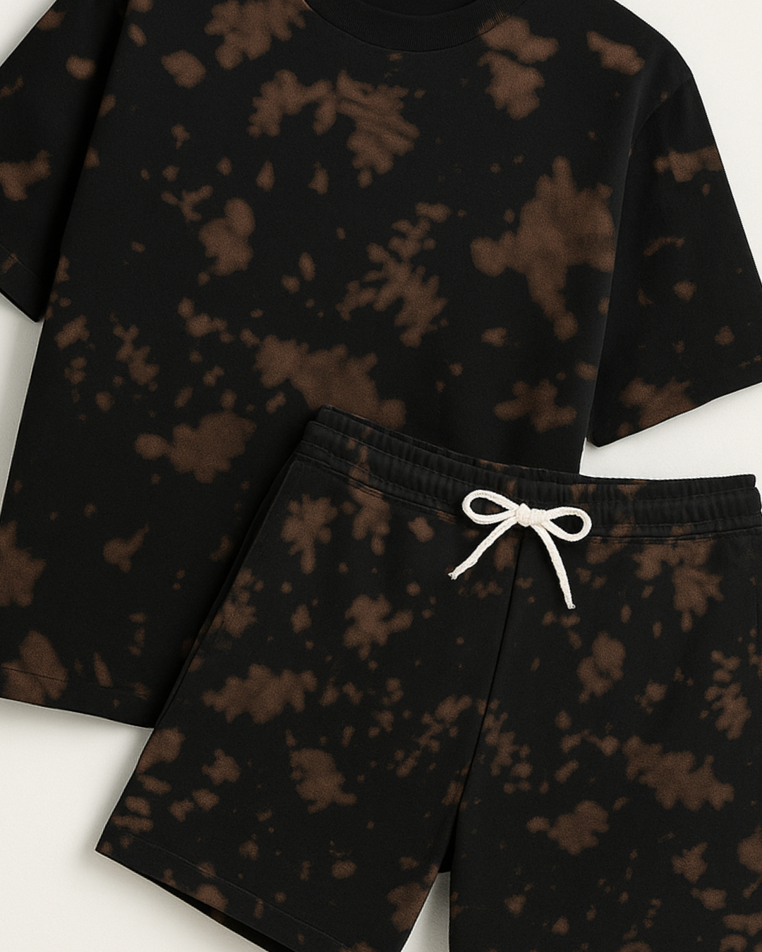Brown Green Tie-Dye Lounge Set | Unisex Oversized T-Shirt & Shorts